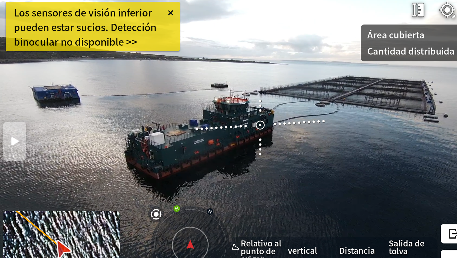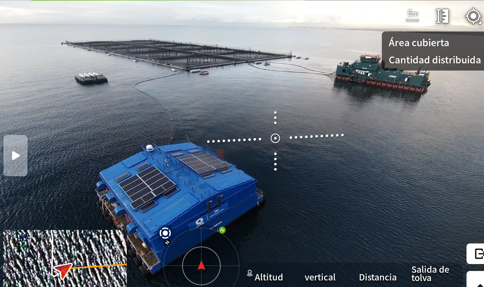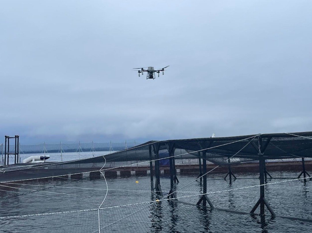 - Monitoreo visual aéreo: supervisión de centros de cultivo, evaluación del estado estructural de jaulas, redes y balsas.